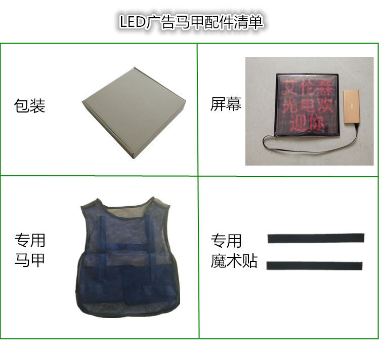 LED马甲屏LED背心屏产品优势🫕: 1.可随时随地发布内容,立刻投入宣传,商家精准引流🧑🏼🏫,扩大广告覆盖范围。 2.形式新颖,技术创新☃️,大大提升瞬间曝光机会👶🏼,吸引顾客眼球,增加客流量。 3.可移动,可穿戴,就是行走中的广告屏。图片♦️、文字、动画并茂💠,生动鲜艳! 4.让你成为傍晚人群密集区的明星👨👩👦👦,无需灯光和舞台👫,不说话也能万人瞩目,天越黑,你越亮!