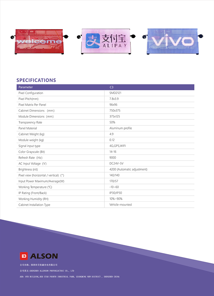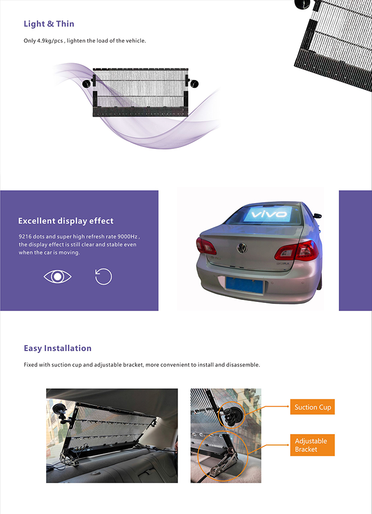 车后窗显示屏 ,室内P7.8-3.9车后窗显示屏